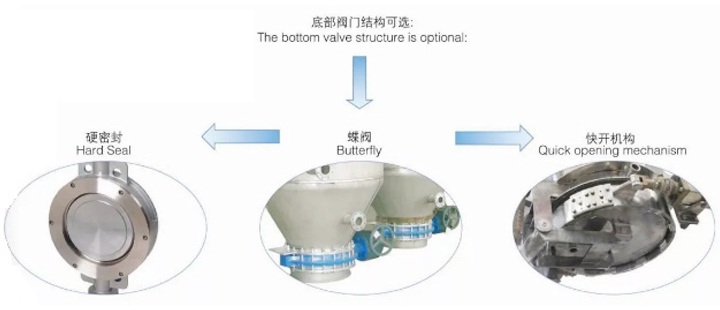 濾餅吹干后,啟動振動器,濾葉片上的濾餅通過底部蝶閥自動落下。如果濾餅吹干過程操作的很好,開啟振動器10S內(nèi)即可落下全部濾餅。在過濾機(jī)底部安裝一個絞龍,有利于輸送濾餅。